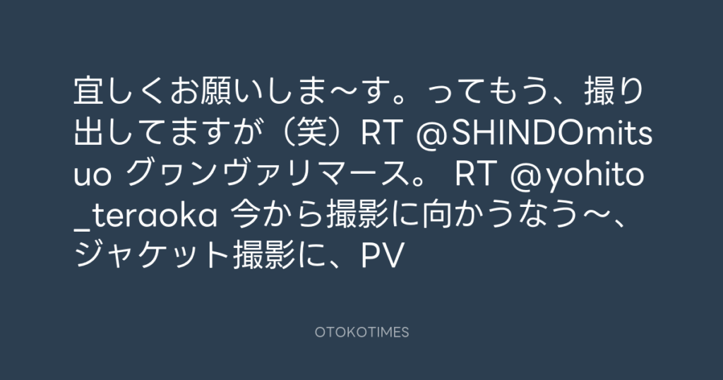 宜しくお願いしま〜す。ってもう、撮り出してますが(笑)RT @SHINDOmitsuo グヮン... -