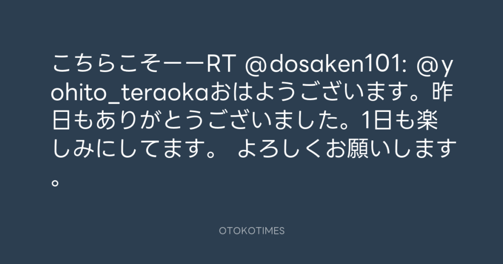 こちらこそーーRT @dosaken101: @yohito_teraokaおはようございます。昨日もありが... -