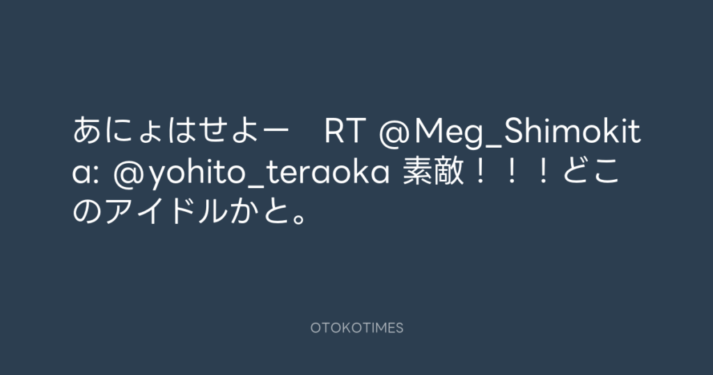 あにょはせよー RT @Meg_Shimokita: @yohito_teraoka 素敵!!!どこのアイドルか... -