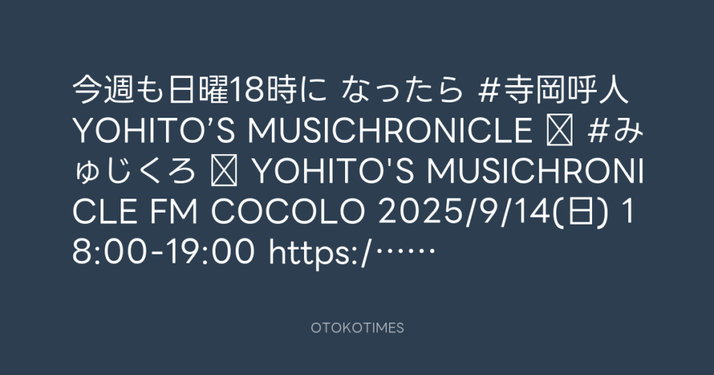 今週も日曜18時に なったら #寺岡呼人 YOHITO’S MUSICHRONICLE #みゅじくろ Y... -