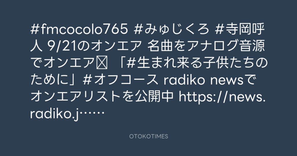#fmcocolo765 #みゅじくろ #寺岡呼人 9/21のオンエア 名曲をアナログ音源でオンエ... -
