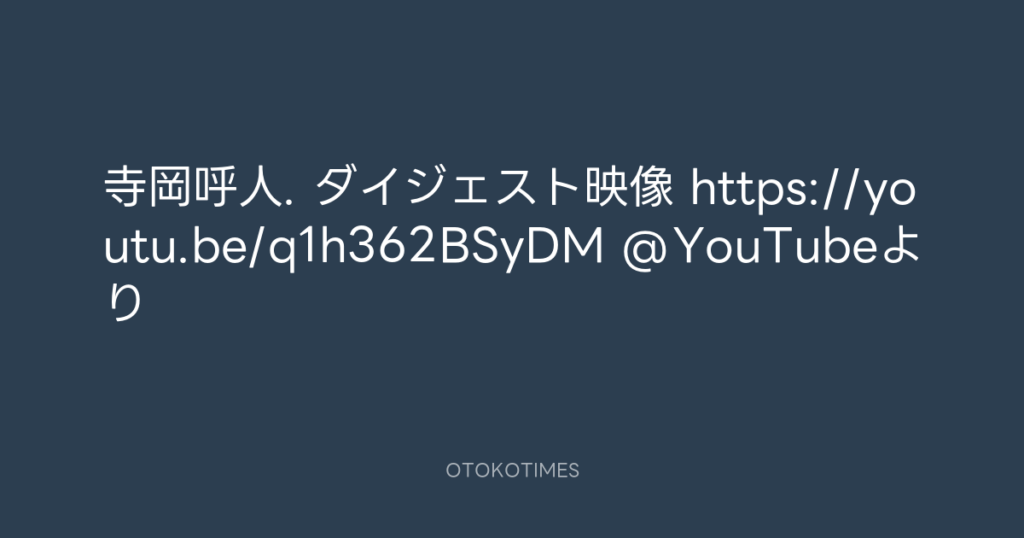 寺岡呼人. ダイジェスト映像 https://youtu.be/q1h362BSyDM @YouTubeより -