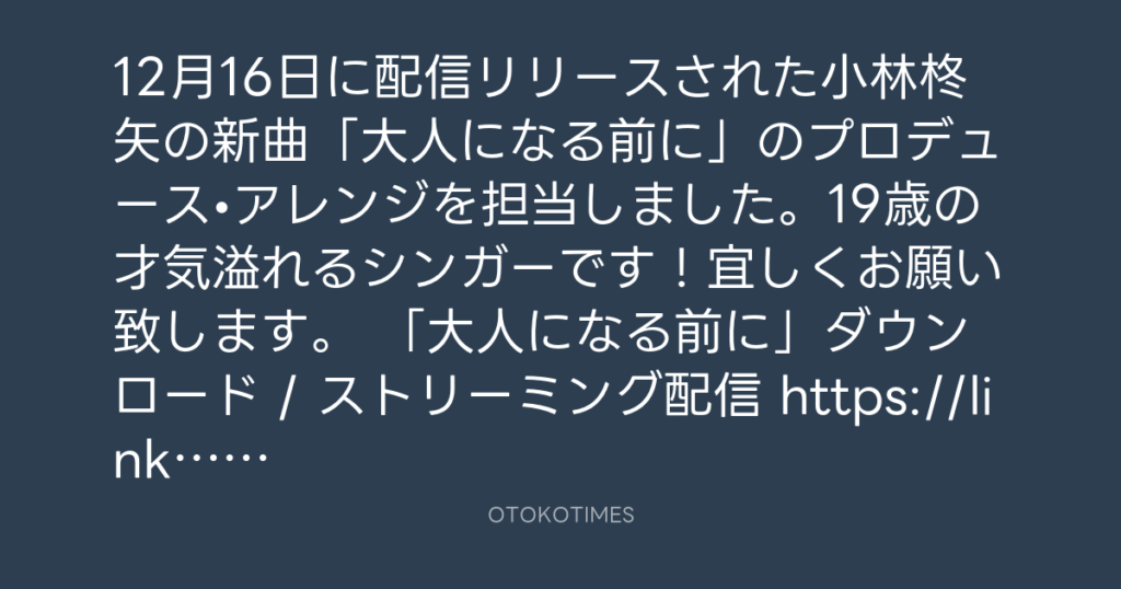 12月16日に配信リリースされた小林柊矢の新曲「大人になる前に」のプロデュース•ア... -