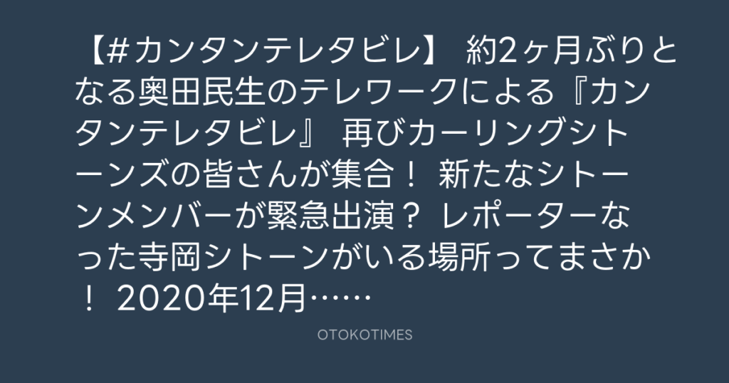 【#カンタンテレタビレ】 約2ヶ月ぶりとなる奥田民生のテレワークによる『カンタン... -
