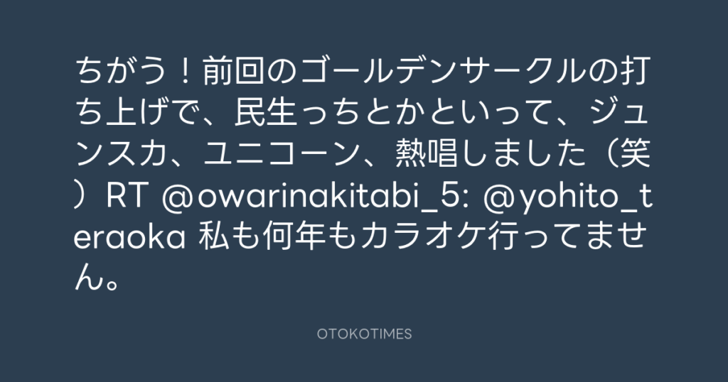 ちがう!前回のゴールデンサークルの打ち上げで、民生っちとかといって、ジュンス... -