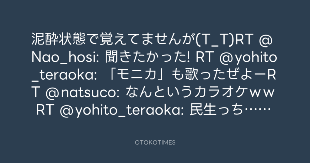 泥酔状態で覚えてませんが(T_T)RT @Nao_hosi: 聞きたかった! RT @yohito_teraoka: ... -