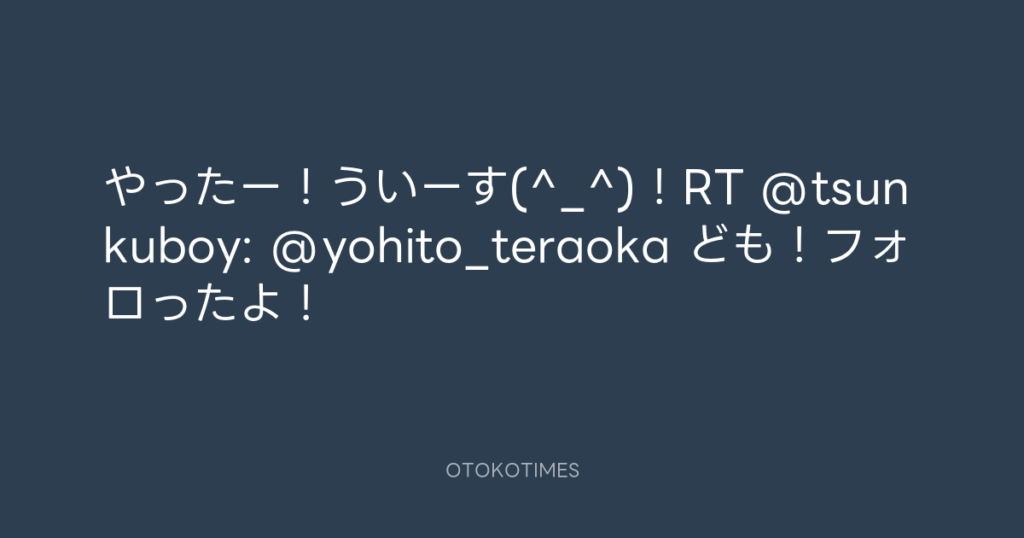 やったー!ういーす(^_^)!RT @tsunkuboy: @yohito_teraoka ども!フォロったよ!