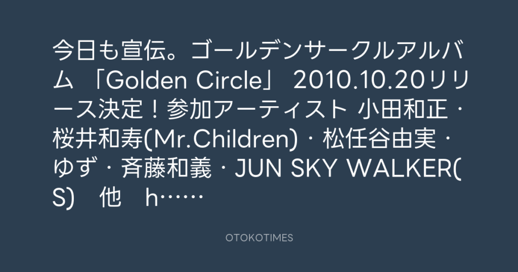 今日も宣伝。ゴールデンサークルアルバム 「Golden Circle」 2010.10.20リリース決... -