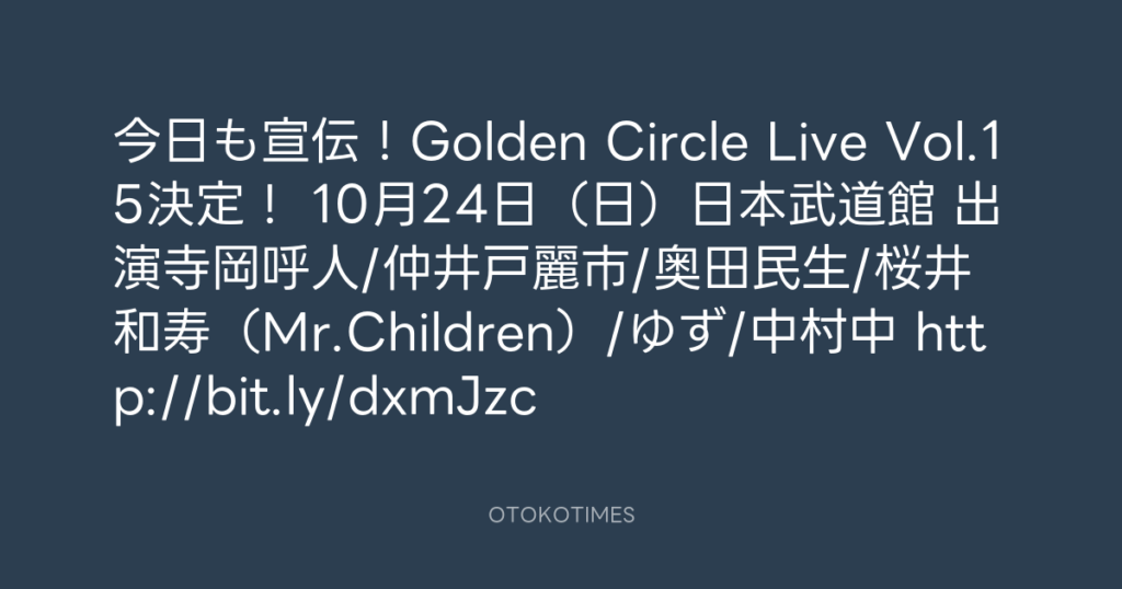 今日も宣伝!Golden Circle Live Vol.15決定! 10月24日(日)日本武道館 出演寺岡... -