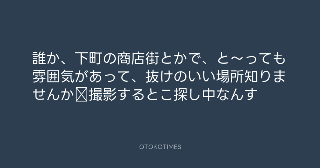 誰か、下町の商店街とかで、と〜っても雰囲気があって、抜けのいい場所知りません... -