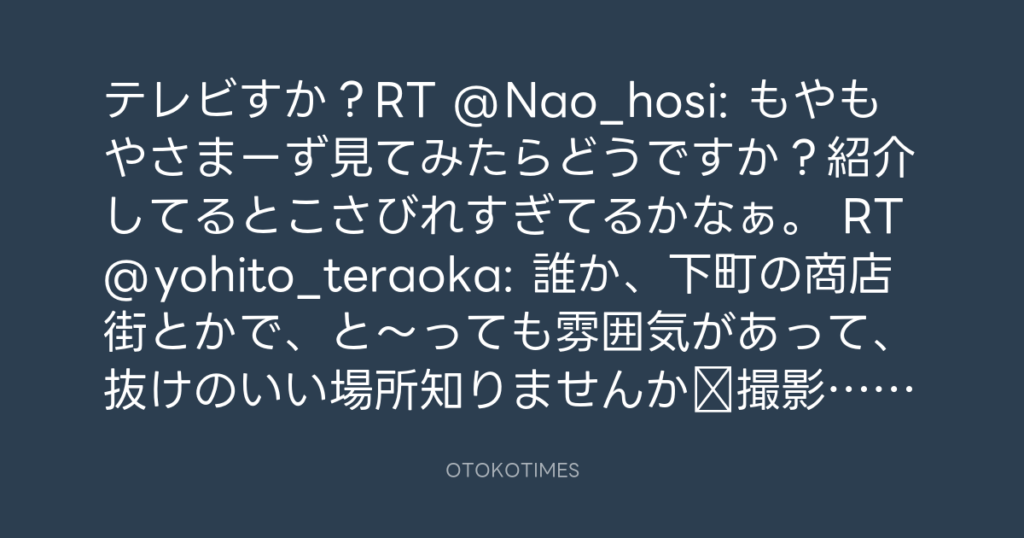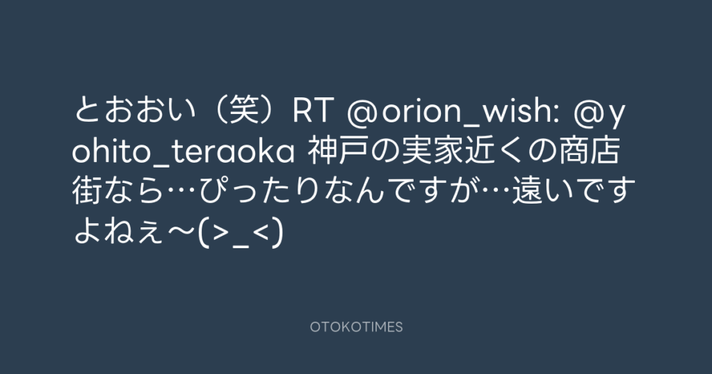 とおおい(笑)RT @orion_wish: @yohito_teraoka 神戸の実家近くの商店街なら…ぴっ... -