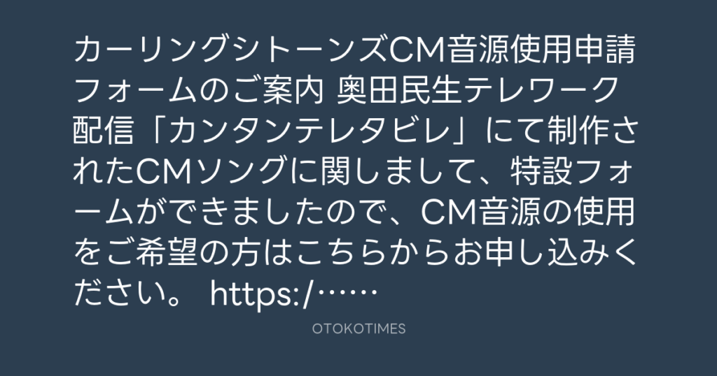 カーリングシトーンズCM音源使用申請フォームのご案内 奥田民生テレワーク配信「カ... -