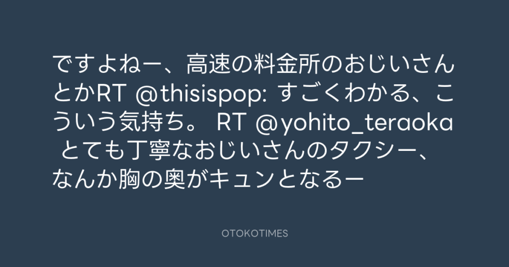 ですよねー、高速の料金所のおじいさんとかRT @thisispop: すごくわかる、こういう... -