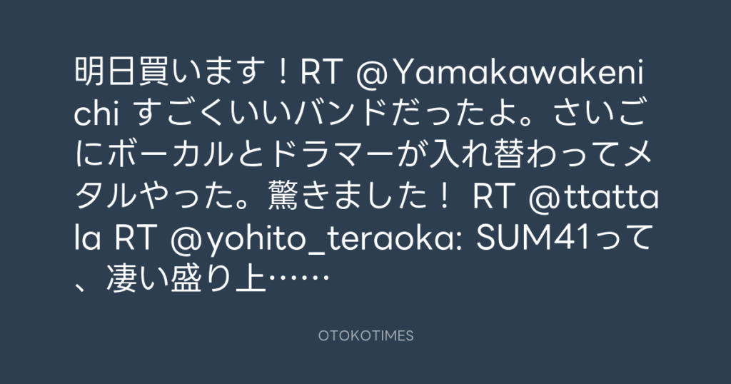 明日買います!RT @Yamakawakenichi すごくいいバンドだったよ。さいごにボーカル... -