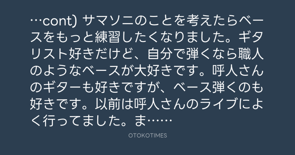 …cont) サマソニのことを考えたらベースをもっと練習したくなりました。ギタリスト... -