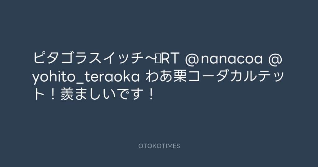 ピタゴラスイッチ〜♬RT @nanacoa @yohito_teraoka わあ栗コーダカルテット!羨まし... -