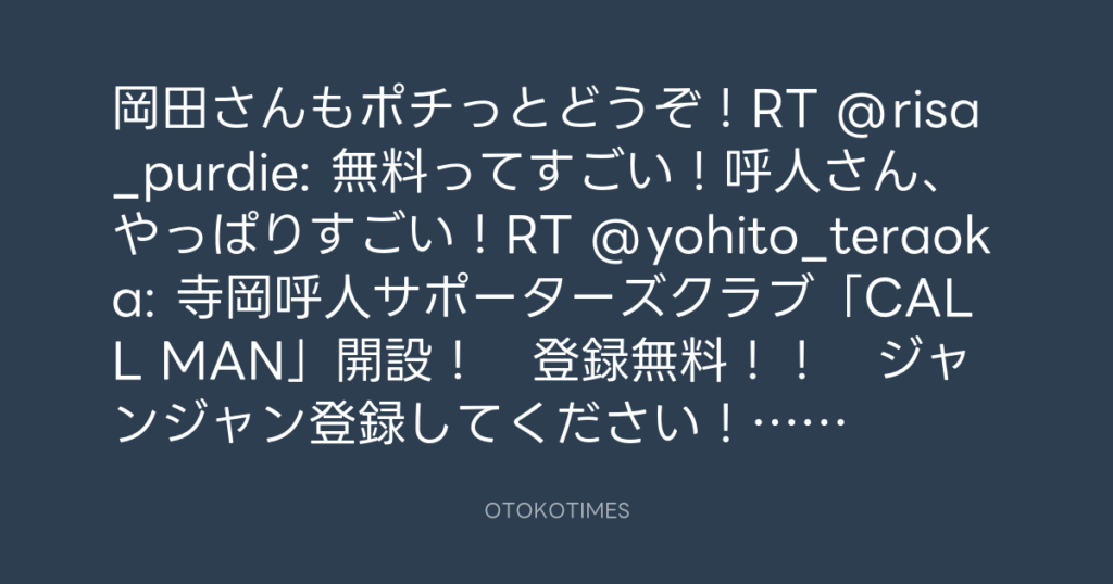 あざーす!RT @miwa_mee: 昨夜さっそく登録しました♪ RT @yohito_teraoka: 寺岡呼... -
