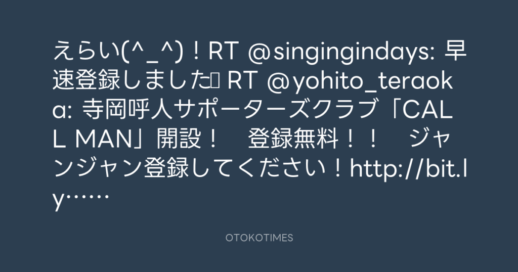 えらい(^_^)!RT @singingindays: 早速登録しました☆ RT @yohito_teraoka: 寺岡呼... -