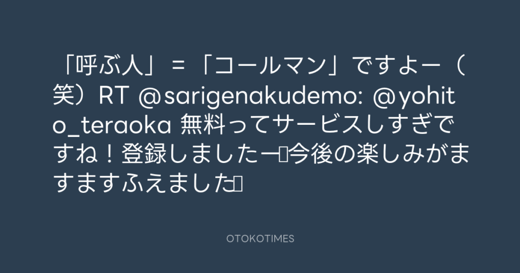 「呼ぶ人」=「コールマン」ですよー(笑)RT @sarigenakudemo: @yohito_teraoka ... -