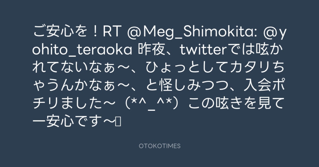 ご安心を!RT @Meg_Shimokita: @yohito_teraoka 昨夜、twitterでは呟かれてないな... -