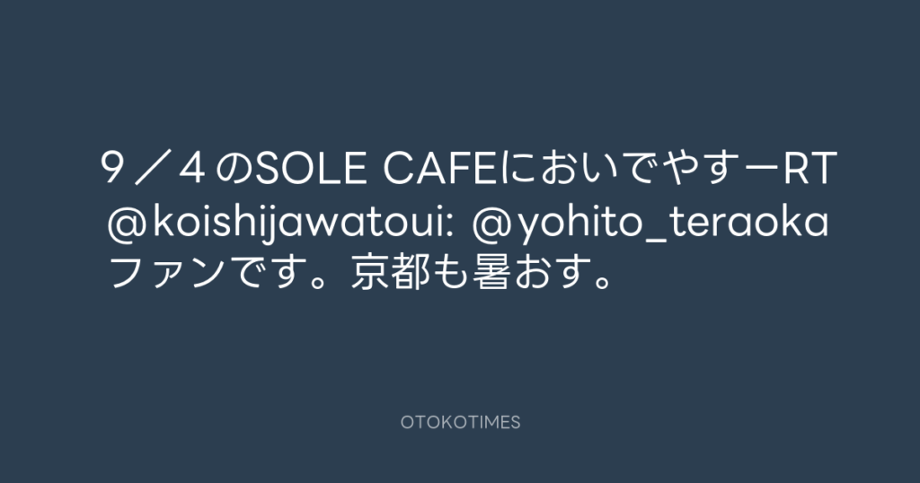 9/4のSOLE CAFEにおいでやすーRT @koishijawatoui: @yohito_teraoka ファンです... -