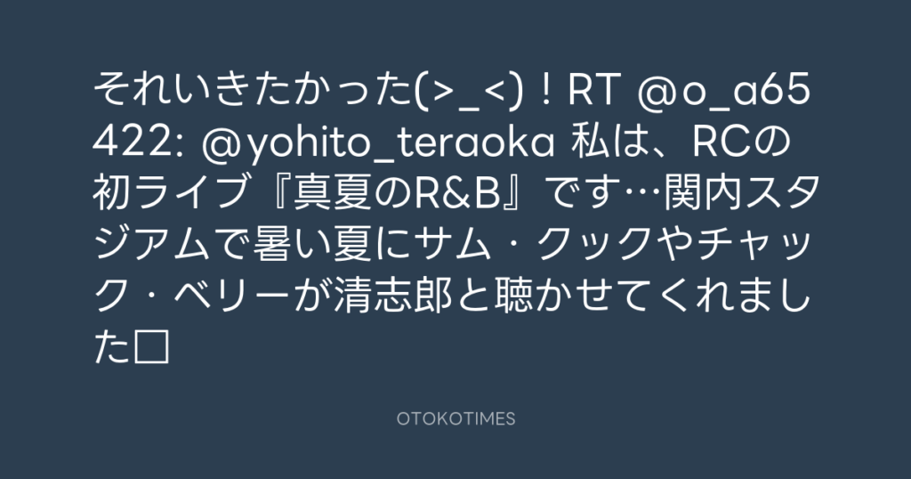 それいきたかった(>_<)!RT @o_a65422: @yohito_teraoka 私は、RCの初ライブ... -