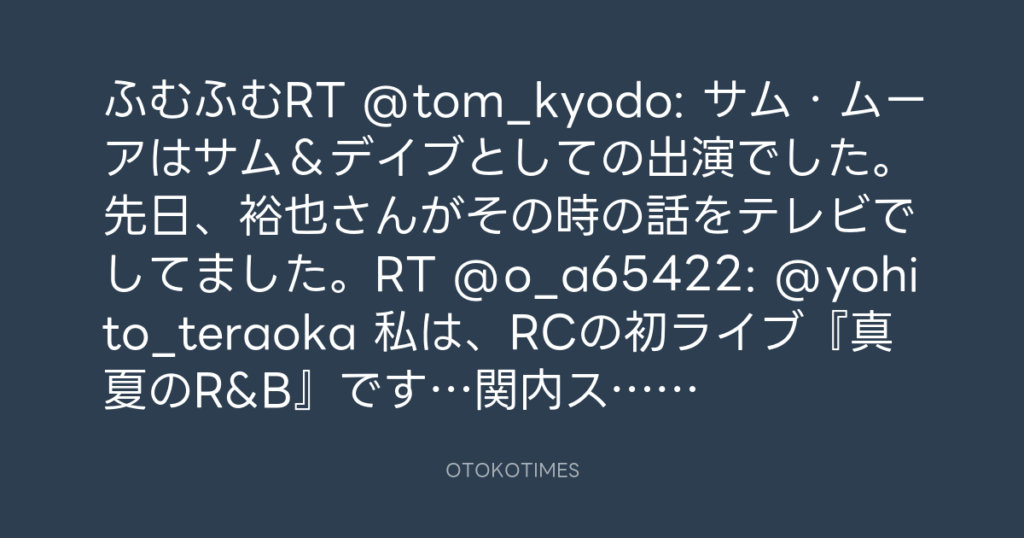 ふむふむRT @tom_kyodo: サム・ムーアはサム&デイブとしての出演でした。先日、裕... -