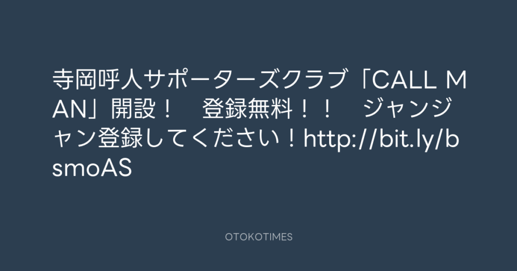 寺岡呼人サポーターズクラブ「CALL MAN」開設! 登録無料!! ジャンジャン登録... -