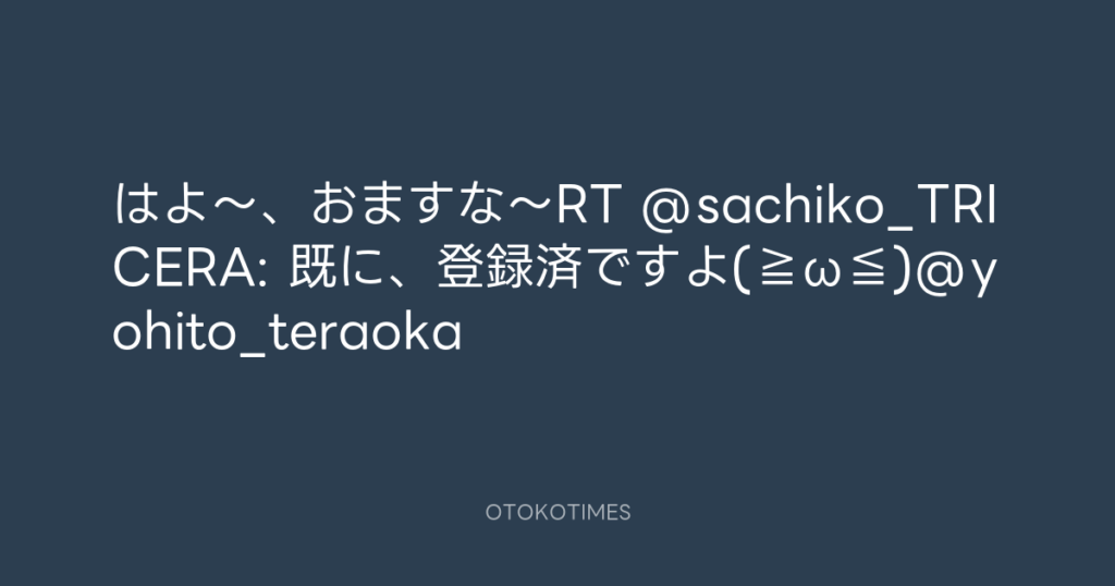 はよ〜、おますな〜RT @sachiko_TRICERA: 既に、登録済ですよ(≧ω≦)@yohito_teraoka -