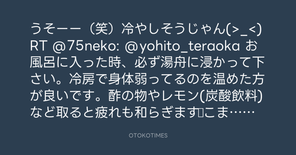 うそーー(笑)冷やしそうじゃん(>_<)RT @75neko: @yohito_teraoka お風呂に... -