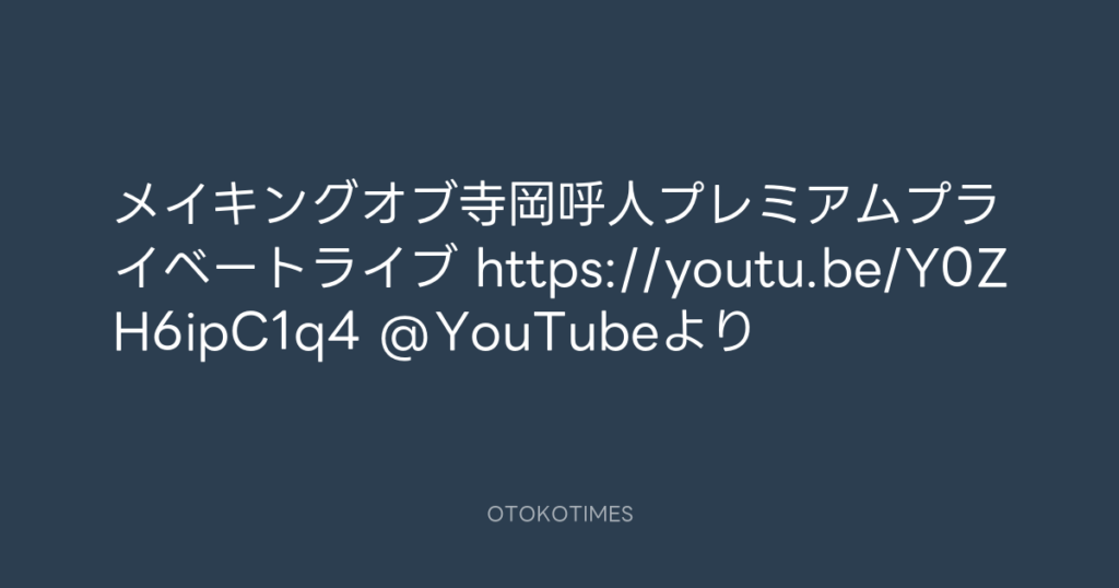 メイキングオブ寺岡呼人プレミアムプライベートライブ https://youtu.be/Y0ZH6ipC1... -