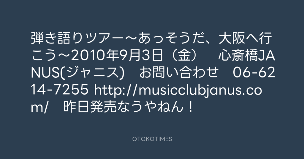 弾き語りツアー〜あっそうだ、大阪へ行こう〜2010年9月3日(金) 心斎橋JANUS(ジ... -