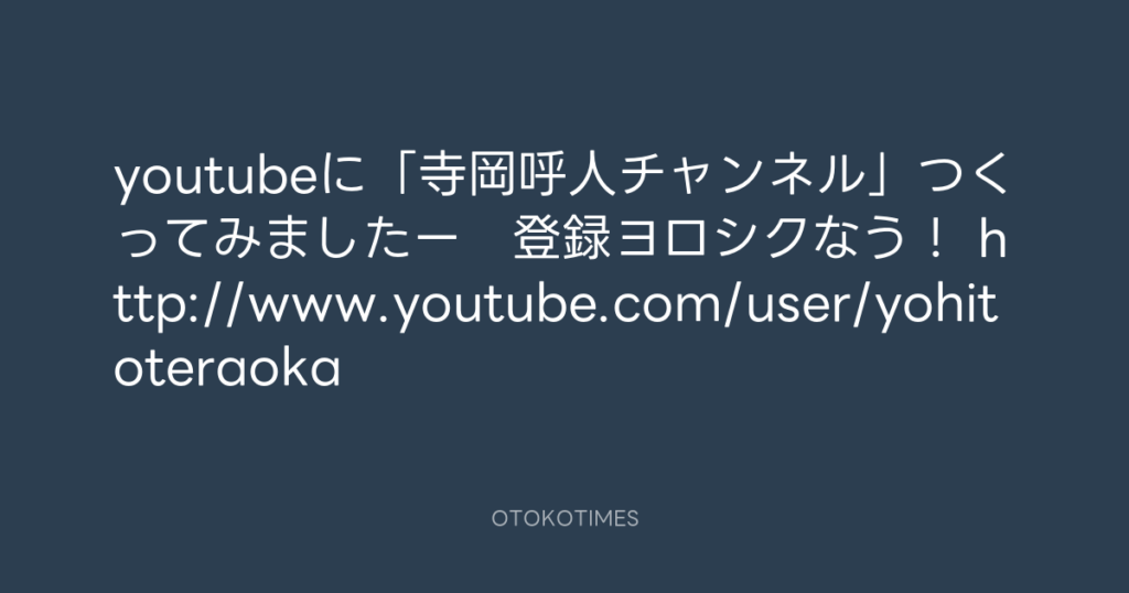 youtubeに「寺岡呼人チャンネル」つくってみましたー 登録ヨロシクなう! http://... -