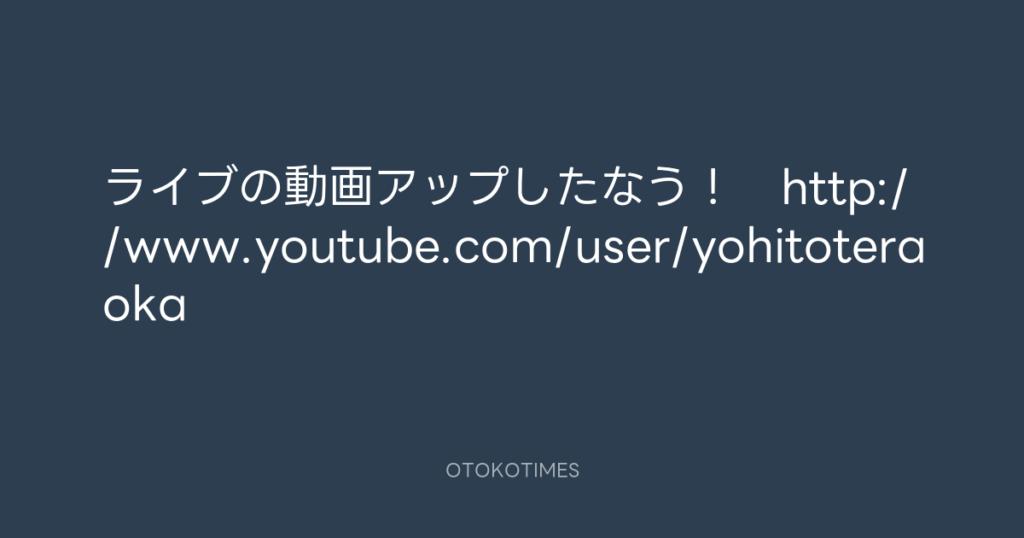 ライブの動画アップしたなう! http://www.youtube.com/user/yohitoteraoka -