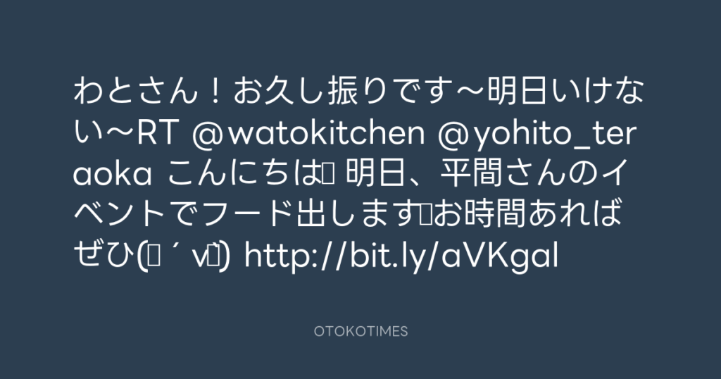わとさん!お久し振りです〜明日いけない〜RT @watokitchen @yohito_teraoka こん... -