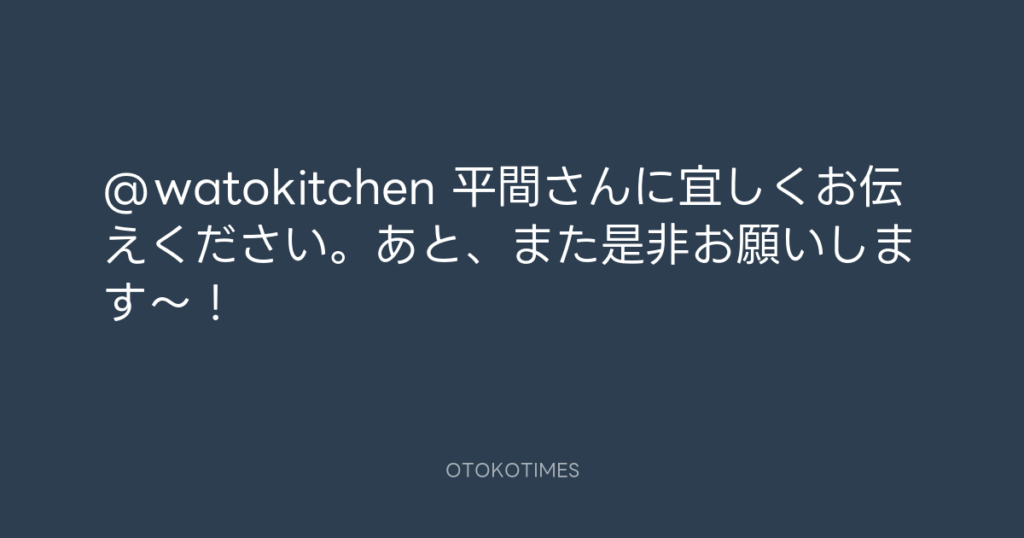 @watokitchen 平間さんに宜しくお伝えください。あと、また是非お願いします〜! -