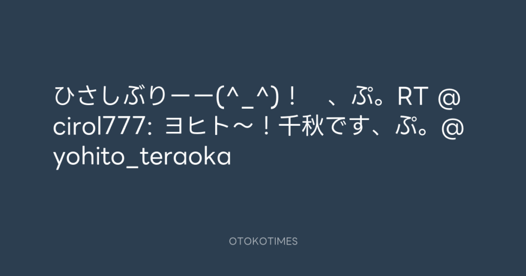 ひさしぶりーー(^_^)! 、ぷ。RT @cirol777: ヨヒト〜!千秋です、ぷ。@yohito_te... -