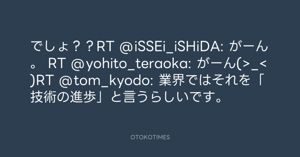 がーん(>_<)RT @tom_kyodo: 業界ではそれを「技術の進歩」と言うらしいです... -