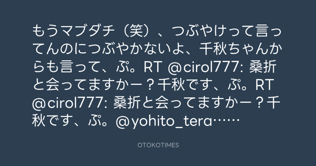 もうマブダチ(笑)、つぶやけって言ってんのにつぶやかないよ、千秋ちゃんからも... -