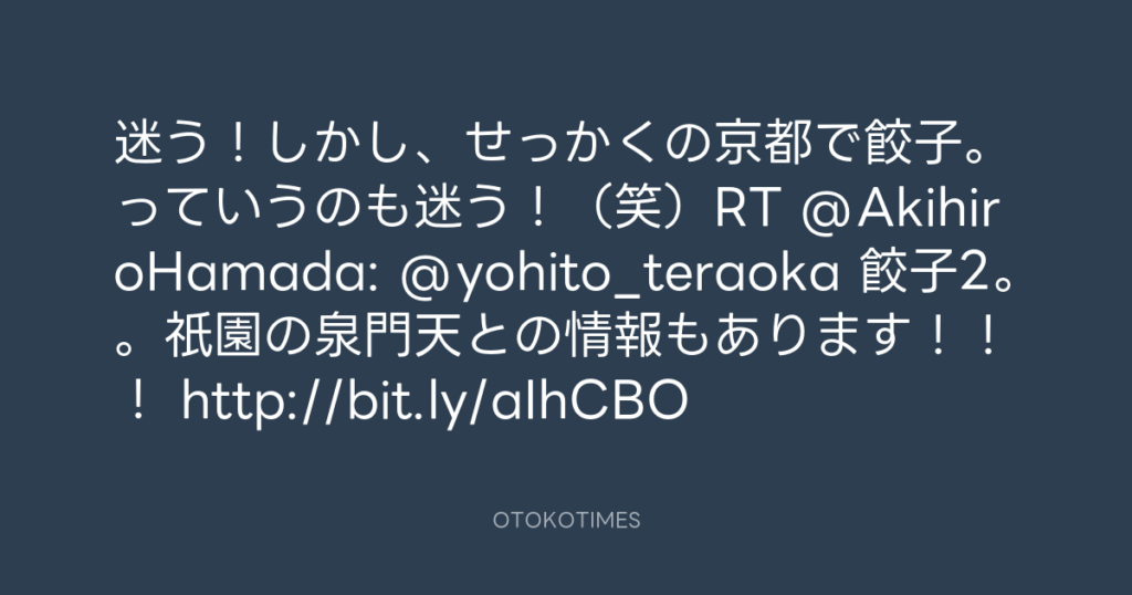 迷う!しかし、せっかくの京都で餃子。っていうのも迷う!(笑)RT @AkihiroHamada... -