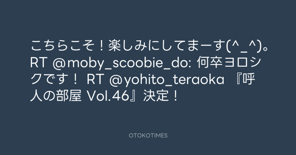 こちらこそ!楽しみにしてまーす(^_^)。RT @moby_scoobie_do: 何卒ヨロシクです! ...