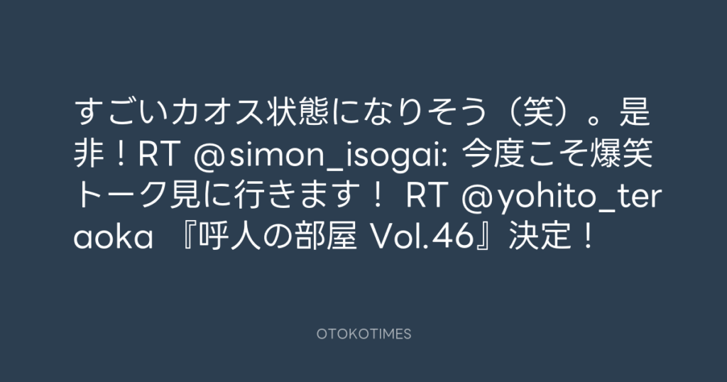 すごいカオス状態になりそう(笑)。是非!RT @simon_isogai: 今度こそ爆笑トーク... -
