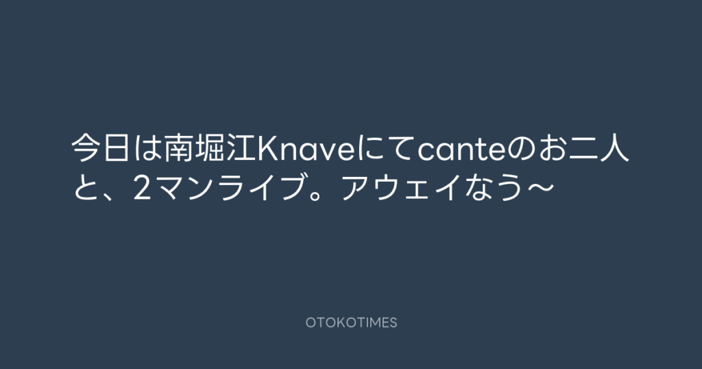 今日は南堀江Knaveにてcanteのお二人と、2マンライブ。アウェイなう〜 -