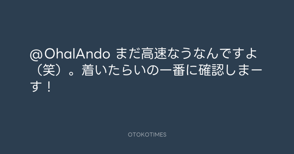 @OhalAndo まだ高速なうなんですよ(笑)。着いたらいの一番に確認しまーす! -