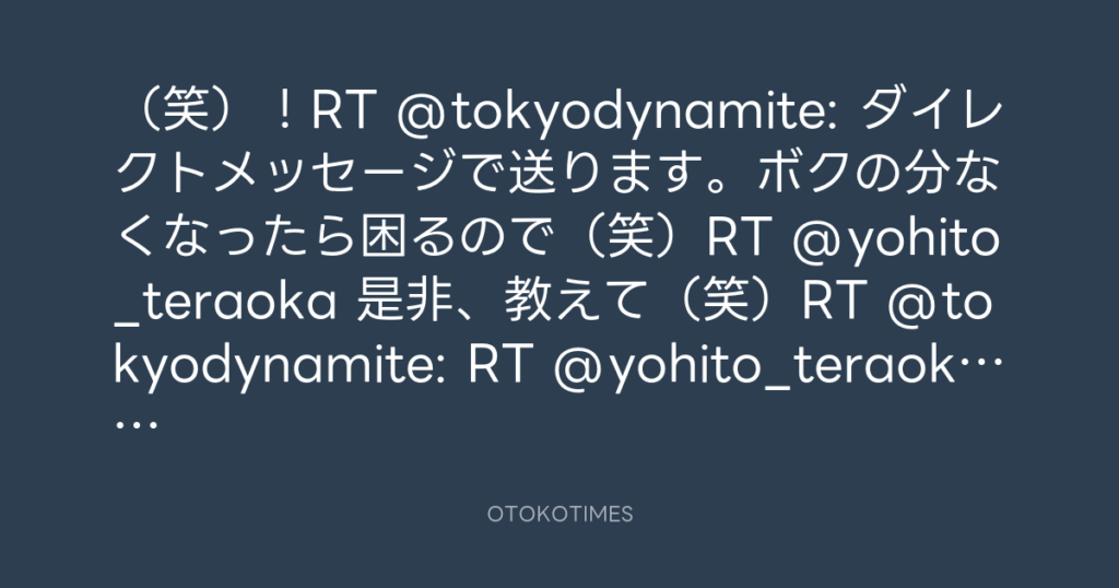 (笑)!RT @tokyodynamite: ダイレクトメッセージで送ります。ボクの分なくなった... -