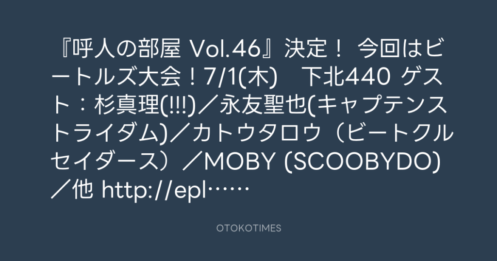 『呼人の部屋 Vol.46』決定! 今回はビートルズ大会!7/1(木) 下北440 ゲスト:杉... -
