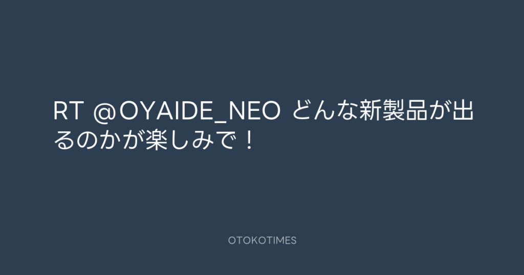 RT @OYAIDE_NEO どんな新製品が出るのかが楽しみで! -
