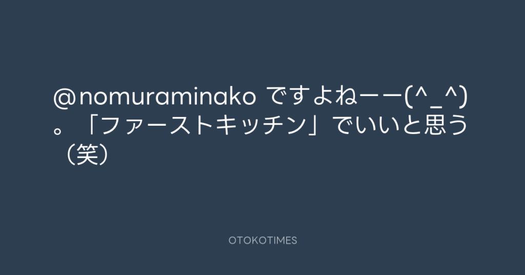 @nomuraminako ですよねーー(^_^)。「ファーストキッチン」でいいと思う(笑) -