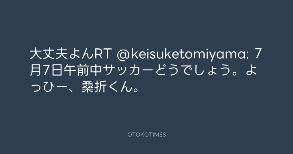 大丈夫よんRT @keisuketomiyama: 7月7日午前中サッカーどうでしょう。よっひー、桑... -