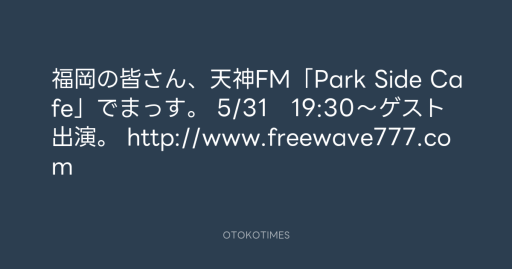 福岡の皆さん、天神FM「Park Side Cafe」でまっす。 5/31 19:30〜ゲスト出演。 ht... -